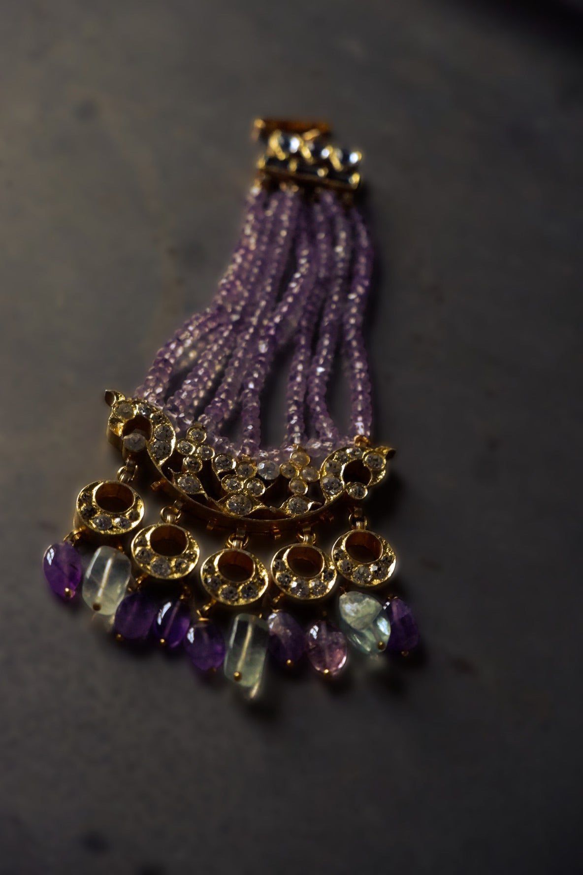 The purity of the water reflects in the crystals that holds the semiprecious gems in this lustrous passa together.
